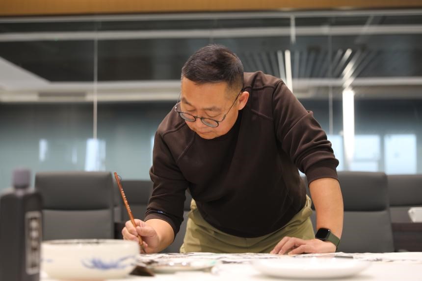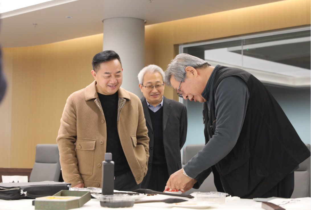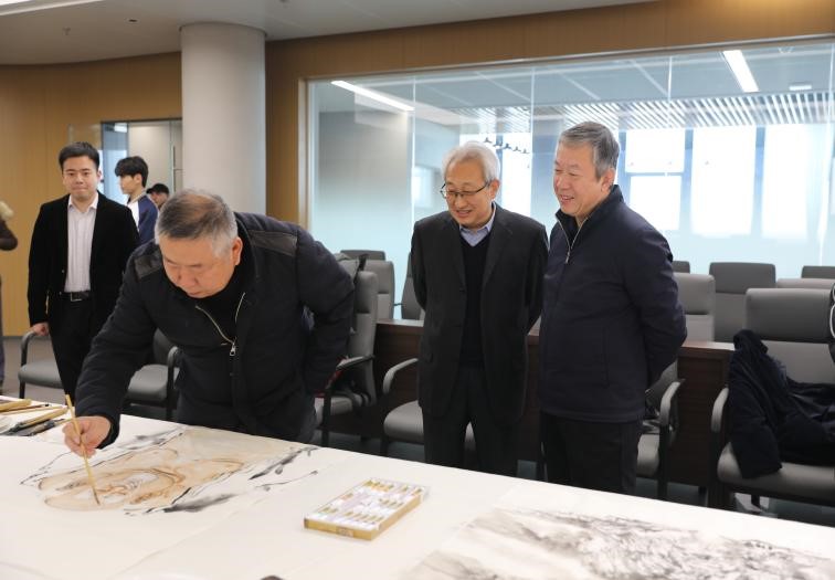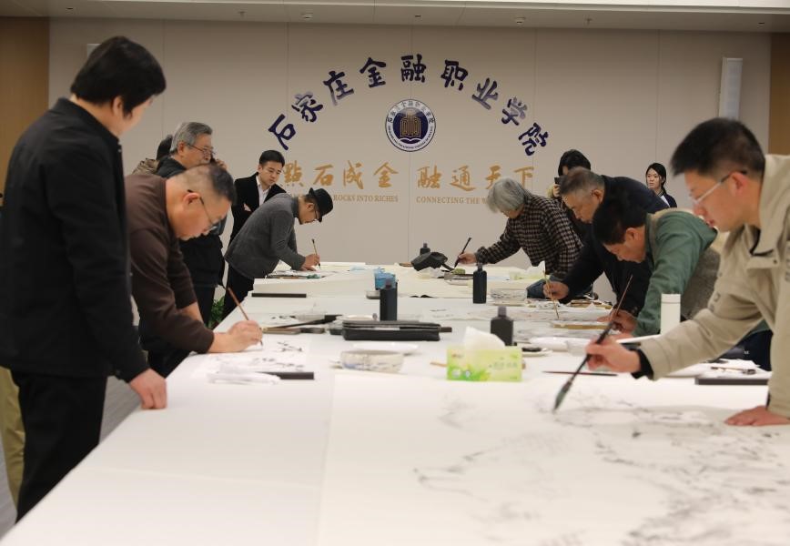 活动高潮迭起,八位艺术家联袂执笔、同心创作,共同完成一幅气势恢宏的丈二整纸书画作品。这幅凝聚众家心血的艺术精品,既展现了当代书画艺术的高超水准,更饱含着对我校高质量发展的美好祝愿。