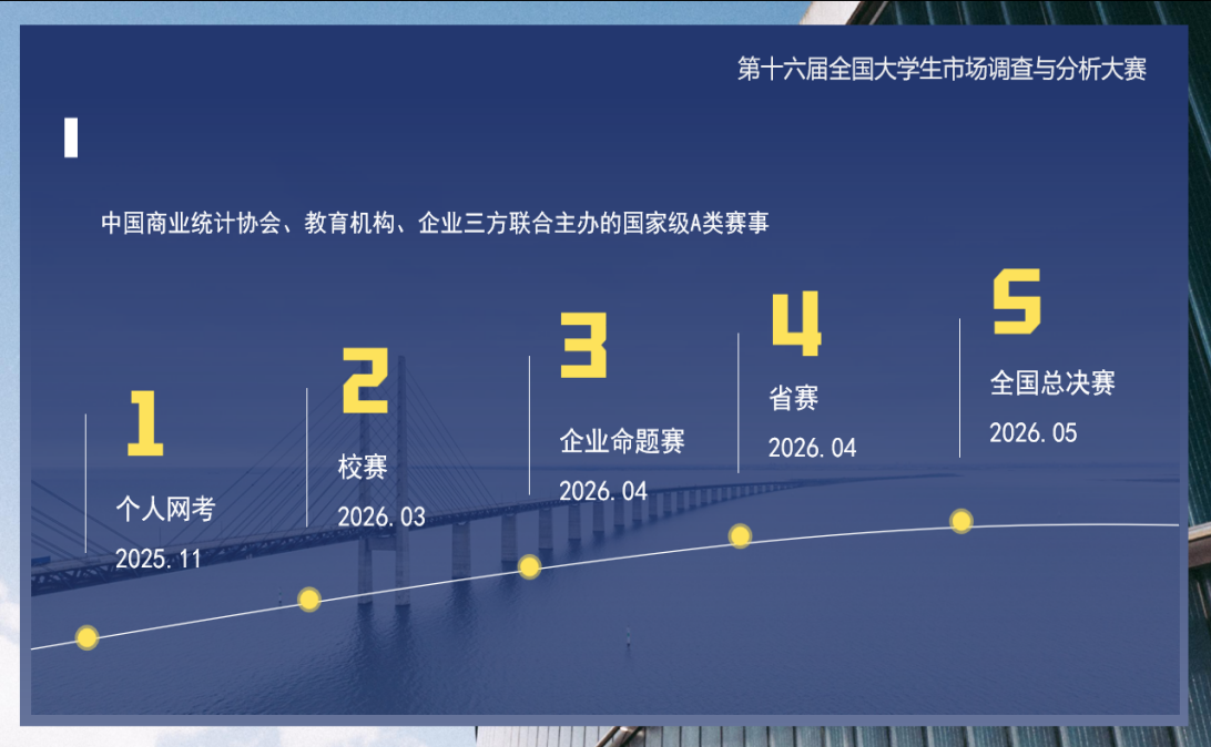 随后,刘老师系统梳理了大赛的专业背景与赛事流程。她指出,市调大赛由中国商业统计学会主办,2018年起被正式纳入《全国普通高校学科竞赛目录》,始终位居前列,现已成为统计学科最具有影响力的公益性专业品牌赛事。针对备赛路径,刘老师详细讲解了从2025年11月的个人知识赛网考,到2026年3月校赛、4月企业命题赛与省赛,直至5月全国总决赛的完整时间线与竞赛形式,为同学们勾勒出清晰的参赛流程图。