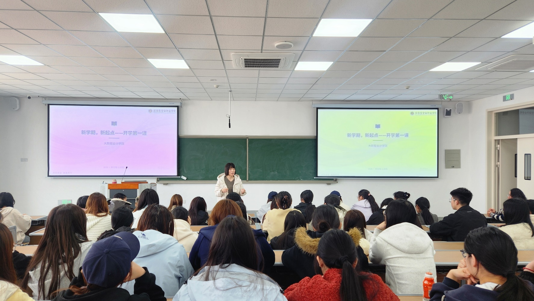 春启新程,万象更新。为助力学子明晰专业方向、规划学业生涯、树立远大目标,大数据会计学院精心组织了新学期“开学第一课”。学院院长亲临现场发表开学寄语,王珊老师以“新学期,新起点”为主题进行了系统授课,为全体学子带来了一堂干货满满、意义深远的成长必修课,帮助同学们在新学期伊始找准方向、鼓足干劲,收获丰硕。