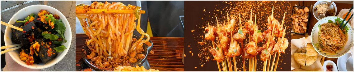 特色小吃有长沙臭豆腐、武汉热干面、麻辣烫、陕西肉夹馍、关东煮、烤冷面等;