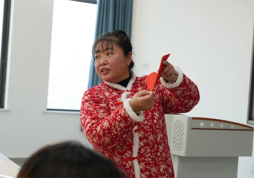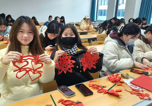 活动伊始,非遗传承人专场分享环节便点燃了学生的热情。剪纸传承人以生动的讲解,揭开了月牙纹、锯齿纹等剪纸符号的文化密码,将“喜”字纳福、“鱼”纹吉祥的民俗寓意娓娓道来;泥塑传承人则追溯中国陶瓷史与本土陶艺特色,展示不同窑变效果的陶艺成品,让学生直观领略泥塑技艺从泥土到器物的蜕变历程。传承人现场演示剪纸剪刻、泥塑揉坯的核心技法,利落的剪刀翻飞、细腻的陶泥塑形,让在场学生纷纷惊叹于非遗技艺的精湛与神奇。剪纸体验工坊是本次活动的热门阵地。传承人从最简单的对称剪纸入手,手把手教学生折纸、画图、裁剪的基础技巧。学生们从模仿剪制窗花起步,逐渐尝试将校徽、生肖、校园风景等现代元素融入创作,原本刻板的红纸在青年学子的手中,化作兼具传统韵味与青春创意的作品。有学生以学院标志为原型设计剪纸图案,将金融科技的现代感与剪纸的传统美巧妙融合;也有学生围绕生肖、节日主题创作,让剪纸成为表达美好期许的载体。活动尾声,优秀剪纸作品被陈列在校园文化墙,成为校园里一道独特的文化风景线。