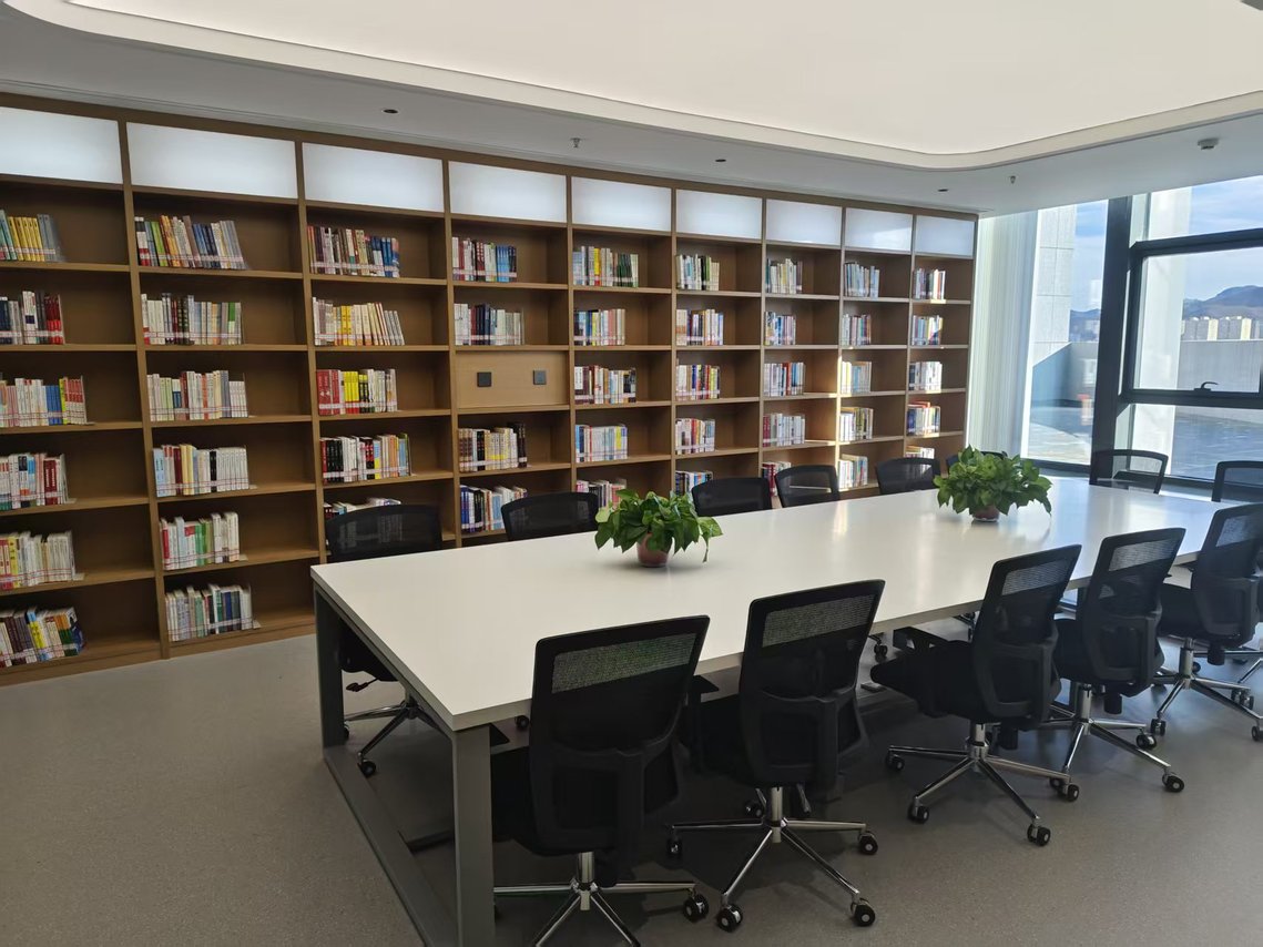 当书籍遇上精准主题,当空间承载多元需求,图书馆不再只是安静的阅读角,更成了思想碰撞、实践探索的专属领地!经过10 个工作日的奋战,由馆员周泽光老师牵头,王雨霏、王丹璐老师协助打造的 8 间主题研讨室正式亮相,从书籍筛选归位到主题书籍上架,每一个细节都凝聚着三位老师的心血,只为给大家带来更具针对性的研讨空间~