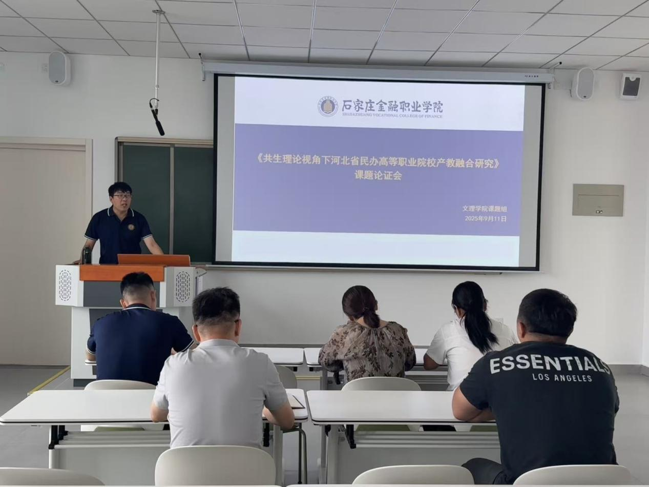 首先,李院长作了题为《共生理论视角下河北省民办高等职业院校产教融合研究》课题论证的主旨报告。报告全面回顾了课题项目立项和项目推进等方面取得的显著进展。报告指出,在全院的共同努力下,学院科研实力持续增强,服务区域经济社会发展的能力不断提升,为学院建设提供了有力支撑。在报告中,李院长逐条分析、讲解课题开题报告所包含的各个环节,叮嘱老师们高质量完成开题报告的内容。