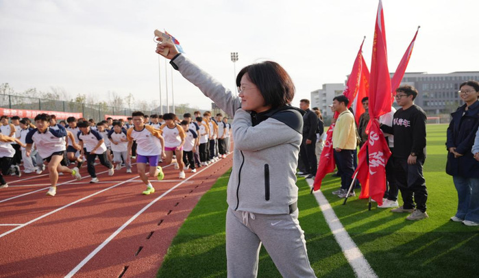 奔跑过程中,师生们热情高涨,有的结伴同行、相互鼓励,有的奋勇争先、挑战自我,还有的手持小旗帜,为身边的参与者呐喊助威。教师代表们也积极参与其中,与学生们并肩奔跑,展现了师生同乐、共赴健康的良好氛围。