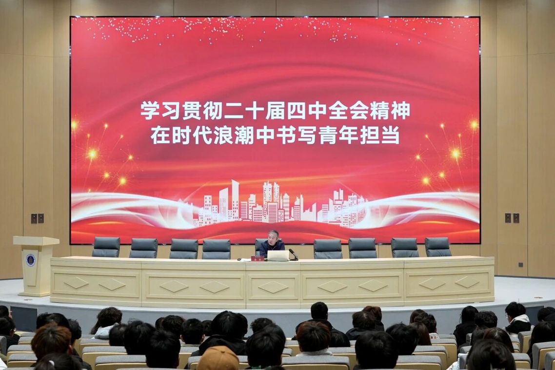 近日,石家庄金融职业学院党委书记董慧以“学习贯彻二十届四中全会精神,在时代浪潮中书写青年担当”为主题,为全校师生代表带来一堂专题思政课,帮助青年学子筑牢思想根基、明确成长方向。