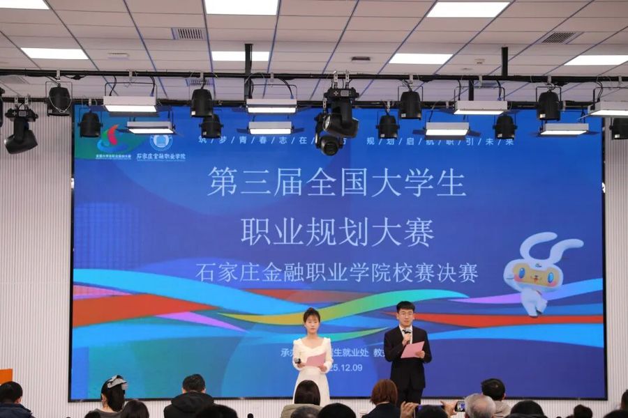 2025年12月9日,第三届全国大学生职业规划大赛省赛暨“中行杯”河北省大学生职业规划大赛石家庄金融职业学院校赛总决赛在北报告厅隆重举行。本次大赛由招生就业处主办,教务处协办,旨在引导学生树立正确的职业观、择业观,提升职业规划能力,助力青年学子走好人生职业发展之路。